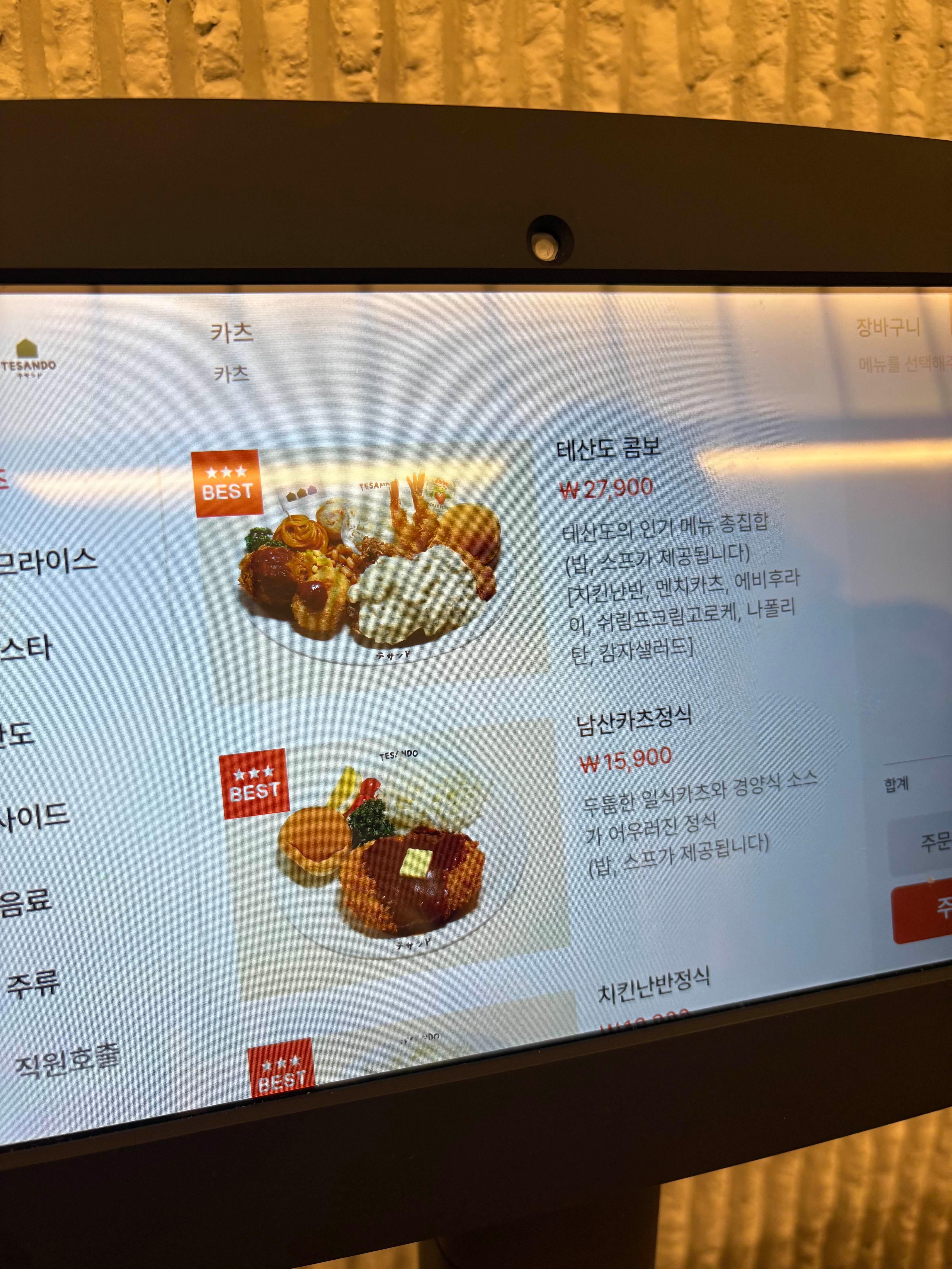 주문은 테이블에 붙어 있는 키오스크로 진행하는 방식.