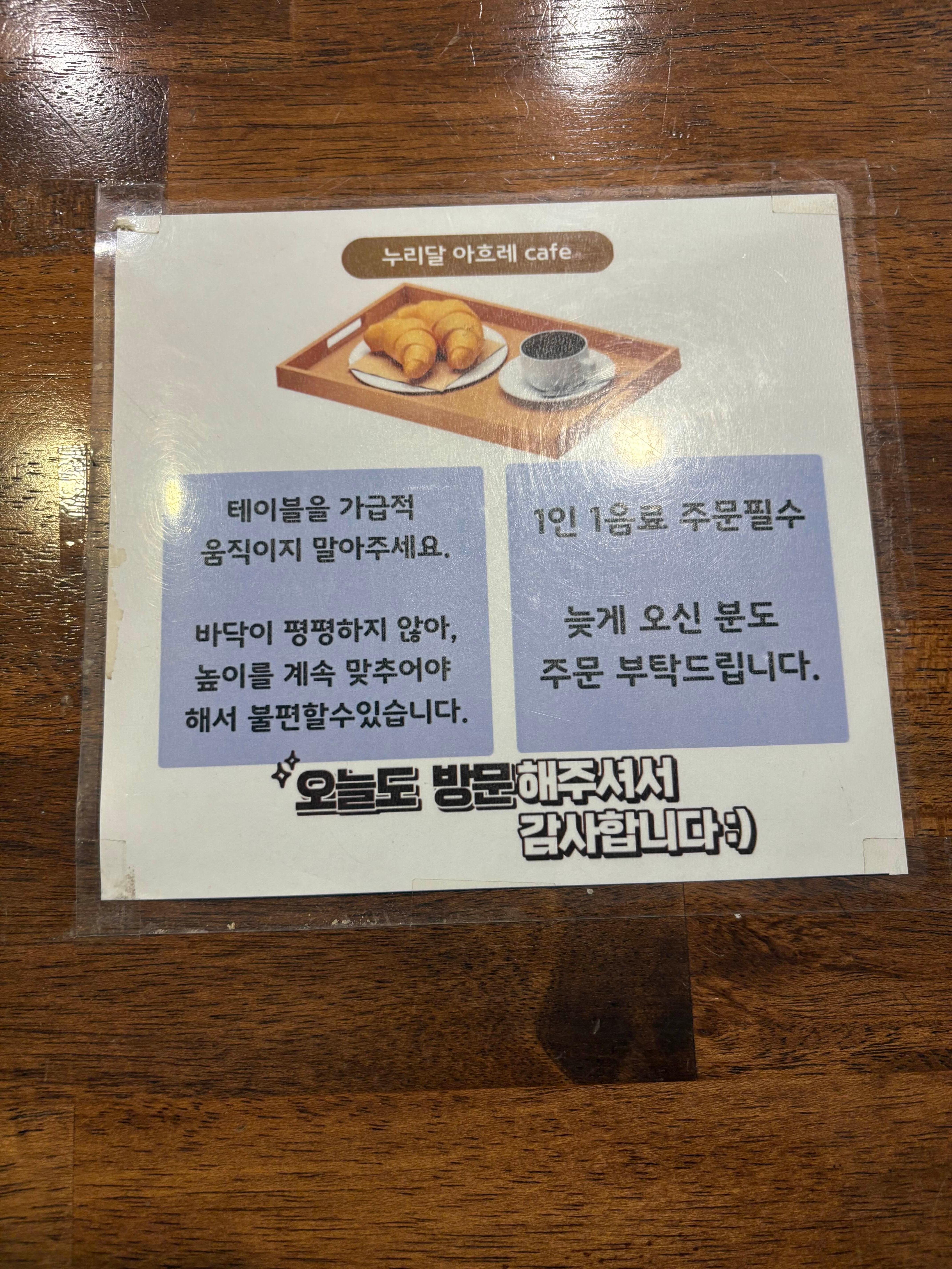 👉 테이블·의자 이동 금지 안내가 있어요.