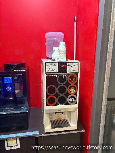 식사 후 나가려는데 출입구 옆에 커피머신이 있어서 자연스럽게 믹스커피 한 잔 ☕ 역시 국밥 마무리는 이거죠 😄