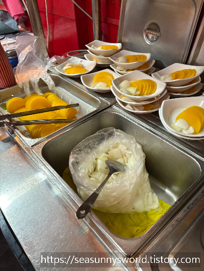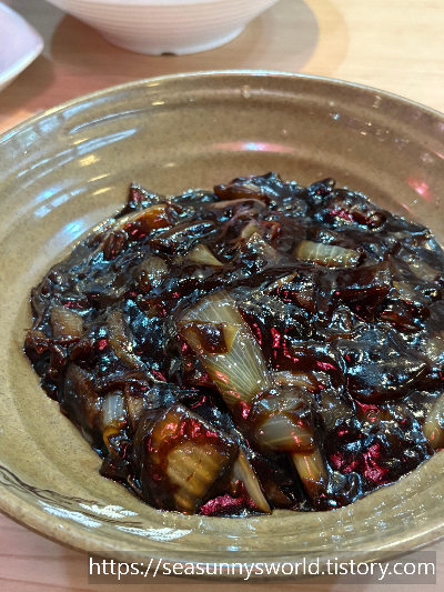 반찬은 셀프코너에서 자유롭게 리필할 수 있어요 ✨ 단무지, 양파, 춘장 모두 마음껏 — 요즘 이런 시스템 너무 편하죠?