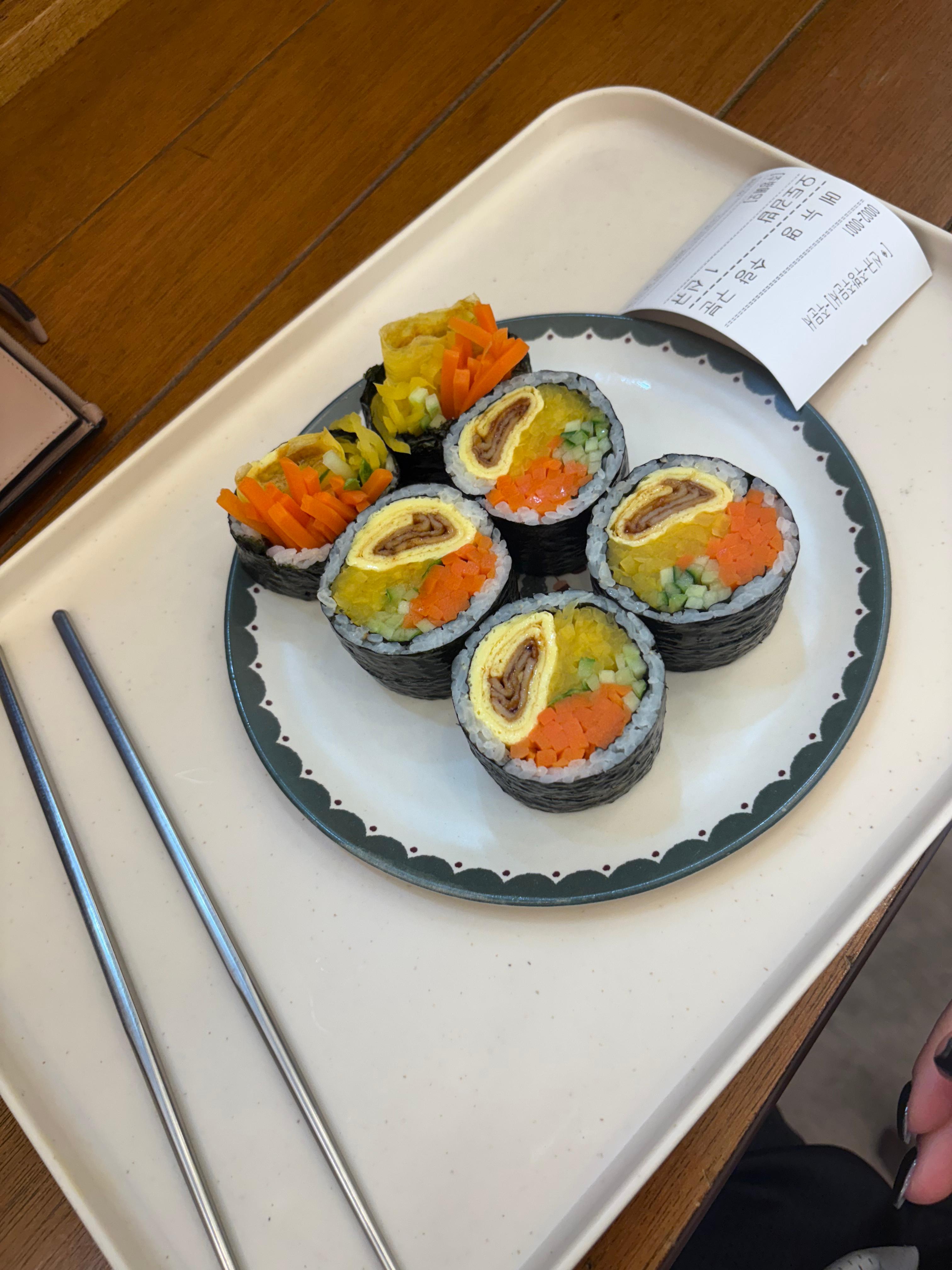 아침부터 들려오는 김밥 말리는 소리 — 그 소리만으로도 힐링이에요.