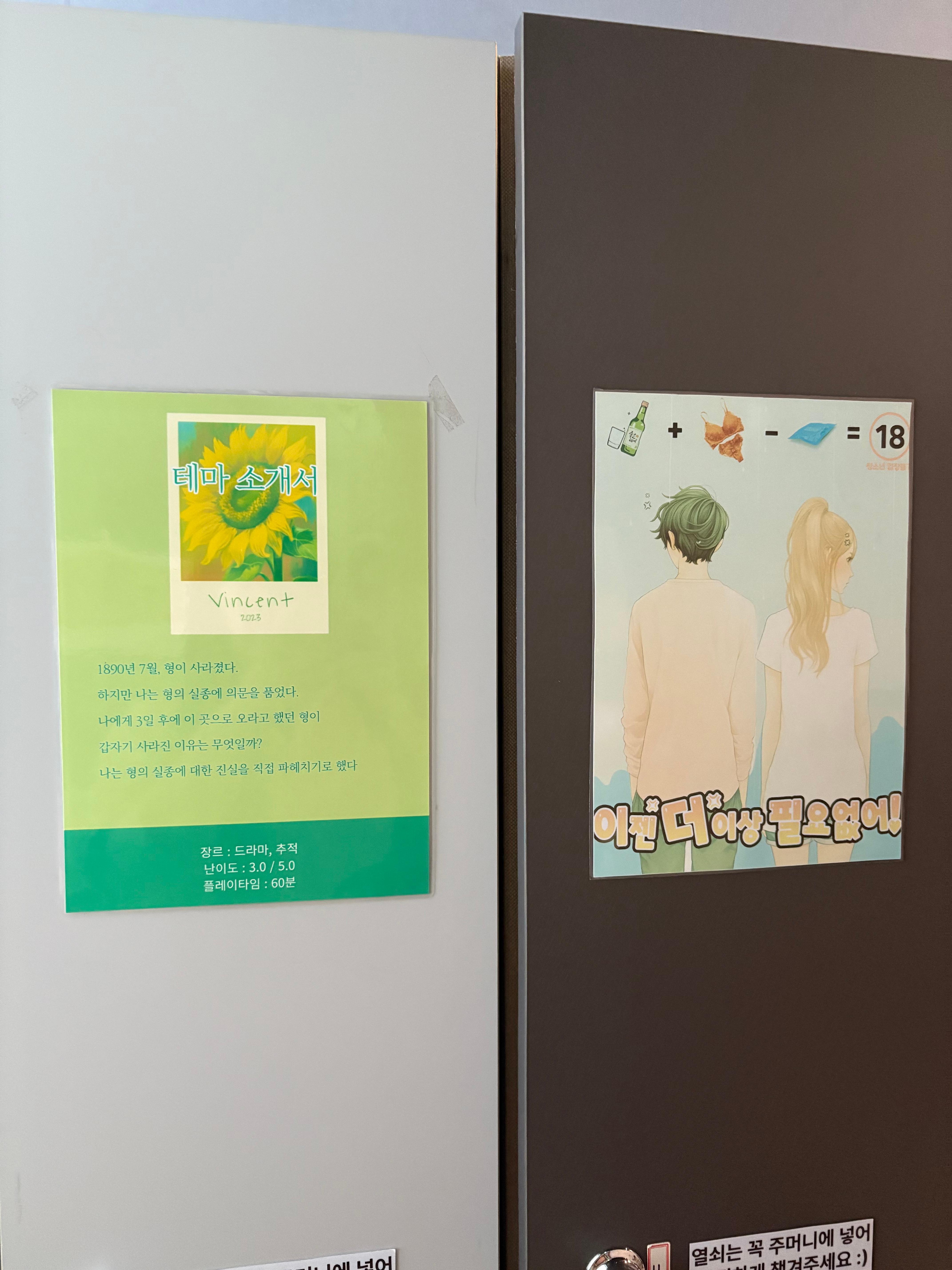 안산 중앙역 근처 리버스이스케이프에서 ‘빈센트’와 ‘이젠 더이상 필요없어!’ 두 테마를 연달아 도전하고 온 따끈한 후기를 가져왔어요.