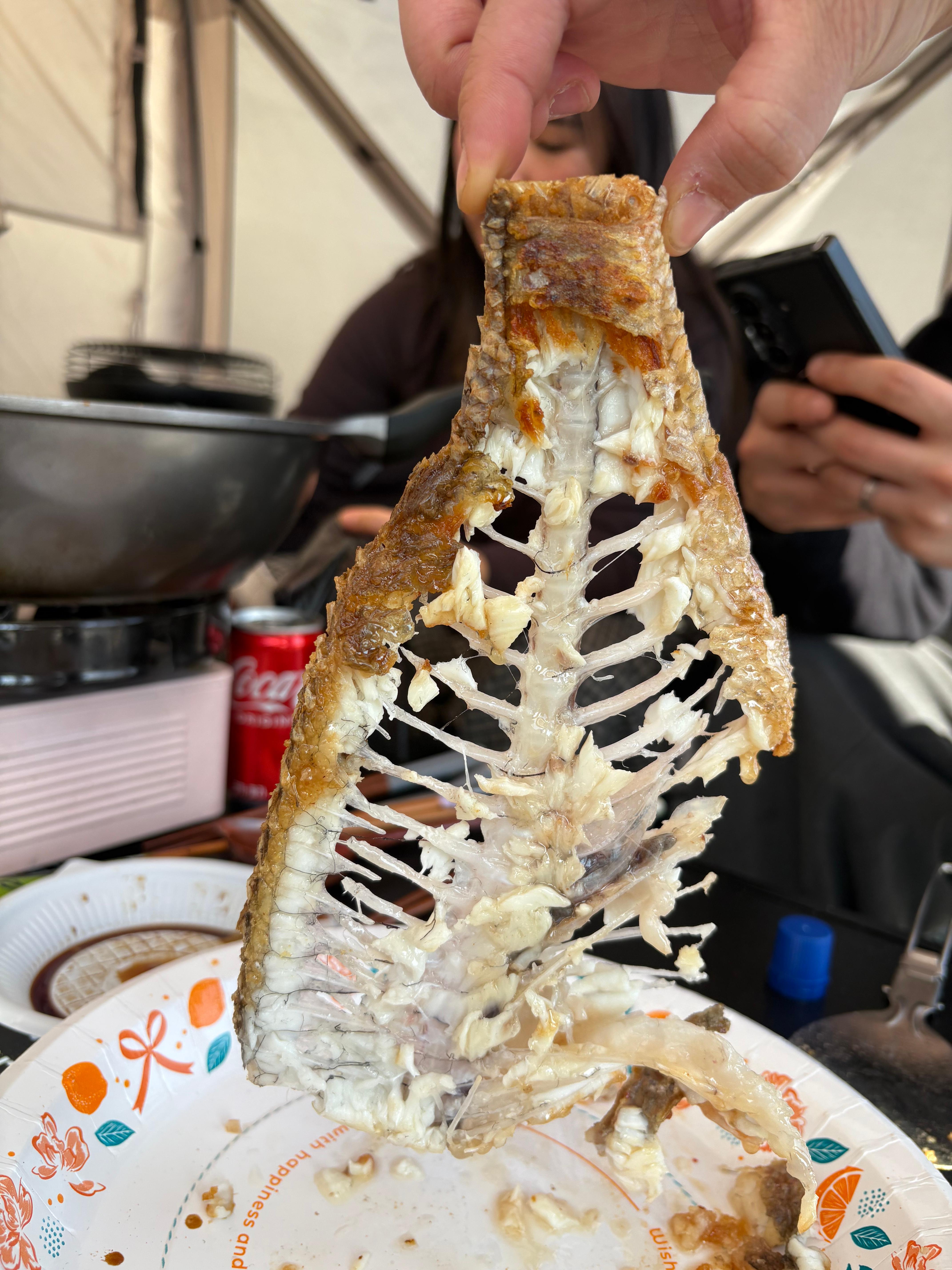 첫입 베어물고 눈 감고 음미할 정도로… 환상 😭 하지만 저는 전날 12시간 낚시하고 넘어온 상태라 LA갈비 먹다가 꾸벅꾸벅… 결국 제일 먼저 천막 안으로 기절하듯 들어갔답니다 ㅋㅋ “아 나 진짜 나이 먹었네…” 했던 순간 😅