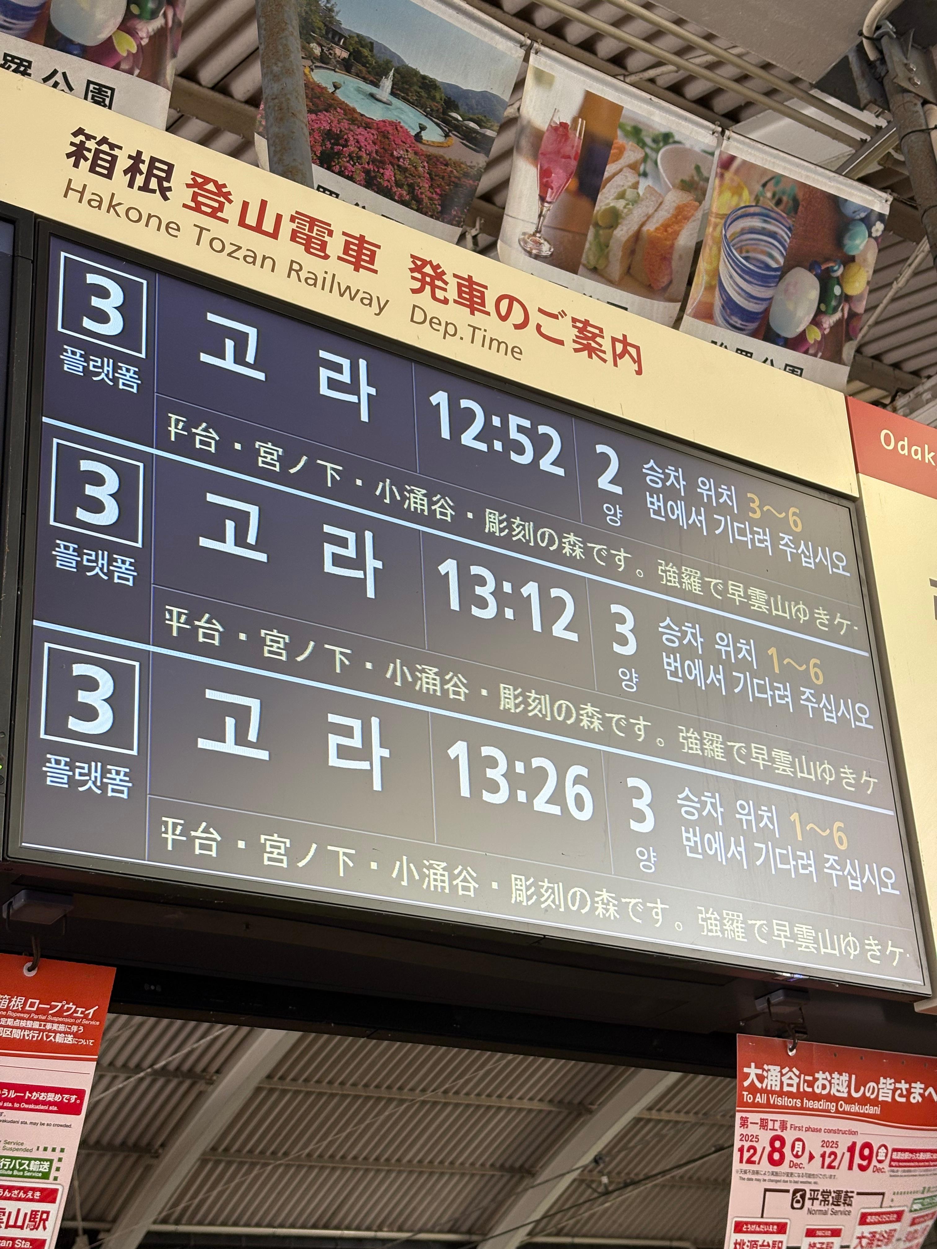 오다와라 도착 후 하코네유모토행 전철로 환승, 그리고 등산열차로 갈아탔는데…